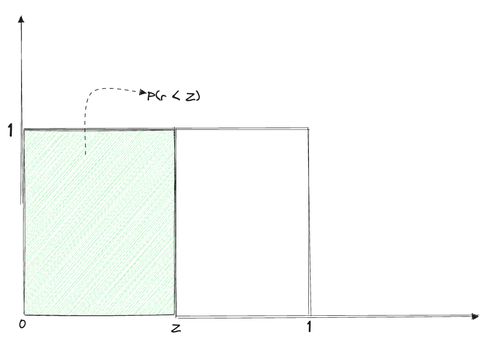 In this case, q(up)≥p(up), implies Z=1 which means P(r<Z)=1 because r falls between 0 and 1. Therefore, the draft token is always accepted.