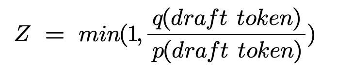 In this case, q(up)<p(up), and we calculate Z=p(up)/q(up), where the value of Z decides if the token will be accepted or rejected. When the target model predicts the draft token with high confidence (leading to Z→1), the probability of r<Z increases, resulting in a higher probability of acceptance of the draft token. Conversely, if Z→0 (indicating p(up)≫q(up)), the token is more likely to be rejected, which makes sense intuitively.